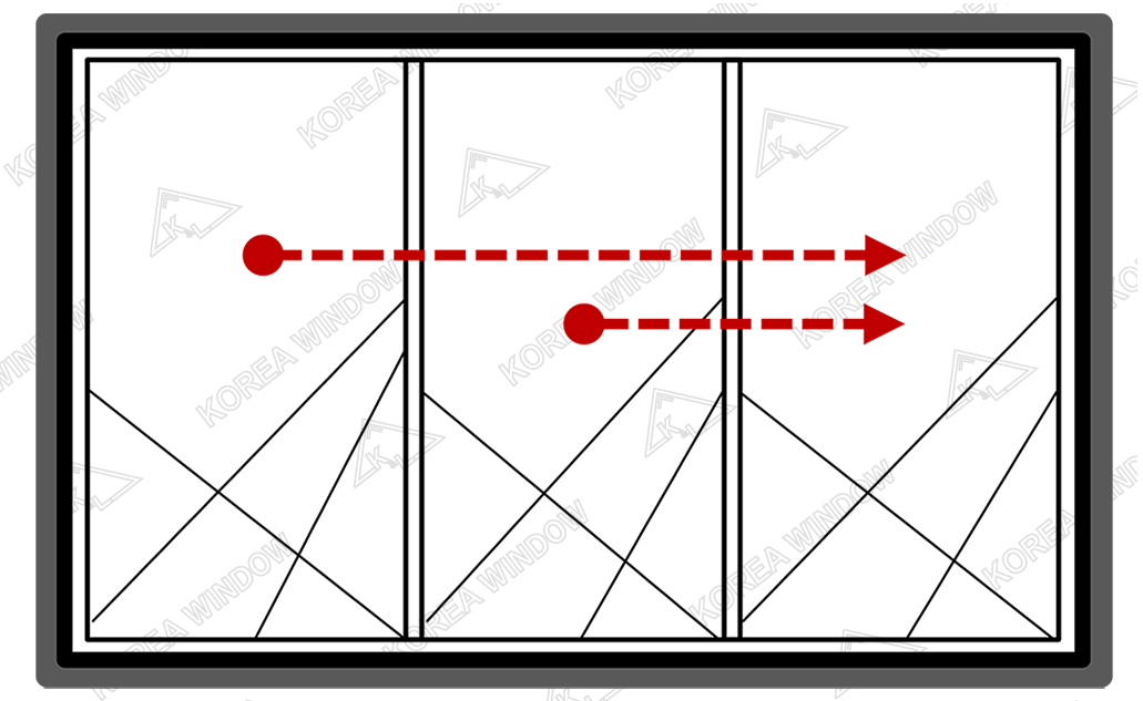 - Là loại cửa đi được mở bằng các ray trượt, có từ 1 đến 3 ray, từ 2 đến 6 cánh và có thể mở được từ ½ đến 2/3 diện tích ô cửa.